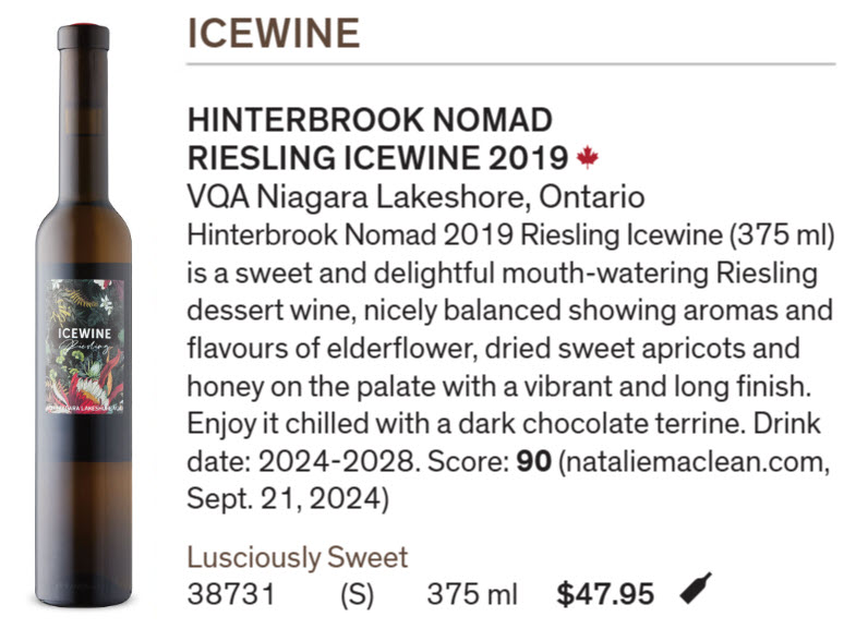 Hinterbrook Winery Nomad Riesling Icewine 2019