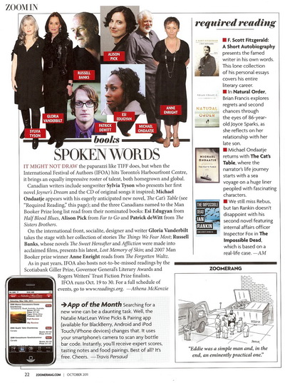 Zoomer Magazine has selected its favourite wine mobile app in the October issue … yay! Our team couldn’t be happier, especially with Kim Cattral on the cover. She just oozes rich and layered Rhone Valley syrah, don’t you think?