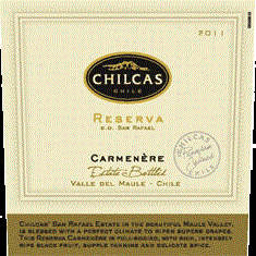 CHILCAS Carmenere Reserva is a full bodied, complex yet pretty wine that is rich, silky, smooth, very approachable and easy to drink... It shows ripe dark fruit (blackberry and plum) with vanilla, cinammon and notes of black pepper, intertwined with roasted coffee and tobacco.