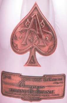This single bottle comes in a black lacquered gift case and was made in small. The Armand de Brignac Rosé is a ballet slipper pink Rosé and leads with Pinot Noir. The bottle has two Ace of Spades icons embossed and engraved on pewter labels, which are hand-applied to the bottles. These bottles were designed by the French fashion house André Courrèges. - Community Wine Reviews