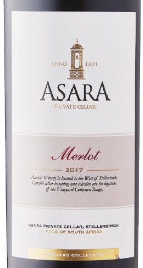 From the Stellenbosch wine region, Asara Vineyard 2017 Merlot is full-bodied, rich with jammy dark berry, spicy plum and wild herb flavours. Tannins are chewy. Give this interesting and vibrant Merlot a try. Decant one hour prior to pouring with a roast shoulder of pork. - Community Wine Reviews