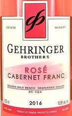 BC VQA Golden Mile Bench Gehringer Brothers Cabernet Franc Rosé 2016