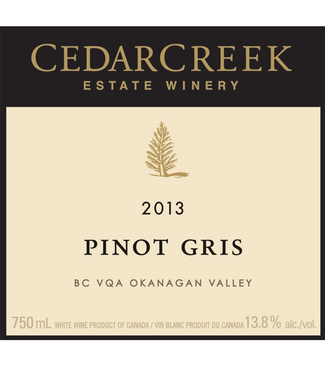This CedarCreek Estate Winery CedarCreek Pinot Gris 2013 was reviewed on October 2, 2015 by Natalie MacLean