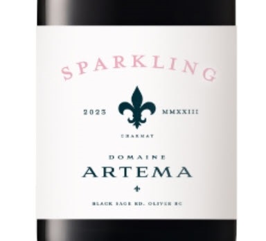 A unique sparkling wine from Domaine Artema, the winery’s 2023 Sparkling is produced from Pinot Blanc, Pinot Gris and Gamay grapes! All grapes were hand-harvested from Domaine Artema’s vineyard on Black Sage Road, Oliver, British Columbia. For the base wine, each varietal was fermented separately. The Pinot Blanc grapes were fermented in tank and the Pinot Gris grapes were barrel fermented and aged. The Gamay wine juice was produced in the saignée method and to reduce colour transfer, skin contact was limited to the time it took to fill the tank with berries.