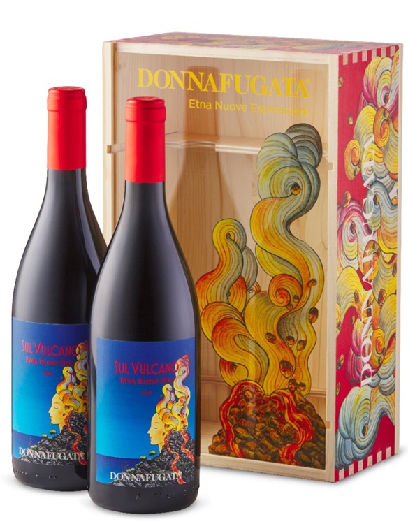 Donnafugata Sul Vulcano (1500 ml) is a duet of a Nerello Mascalese red wine blend presented in a wooden gift box. Produced from sustainably grown grapes from vines planted in the volcanic soils on the slopes of Mount Etna, Europe's largest active volcano in the Sicily wine region.
