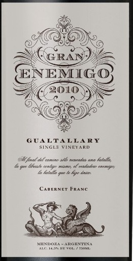 Produced by Adrianna Catena & Alejandro Vigil, Ancona, the 2009 vintage is an Argentine red wine blend by El Gran Enemigo of 80% Cabernet Franc, 10% Petit Verdot and 10% Malbec grapes. There's about 30% whole bunch maceration. The wine is matured in French and American oak barrels for 18 months (35% new). - Community Wine Reviews