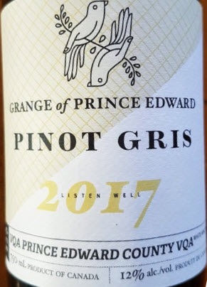 Grange of Prince Edward Estate Winery Estate Pinot Gris 2017 Wine Review