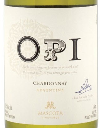 The term OPI is a nickname for Mascota’s highly respected winemaker, Rudolfo ‘Opi” Sandler. With over 30 years of experience, "Opi" is renowned for getting the most of out his grapes and as such, is ranked as one of Argentina’s top 10 winemakers in the country. The fruit for this 100% Chardonnay wine were all hand harvested and underwent partial malo-lactic fermentation, allowing for a creamy texture. The result is a light and refreshing wine with well integrated notes of soft peach, floral, yellow apple, pear, slight pineapple and a little salinity. The medium-short finish displays flavours of spice, cedar and a touch of butter. A fun warm weather sipper that would pair lovely on a backyard patio with assorted hard cheeses.