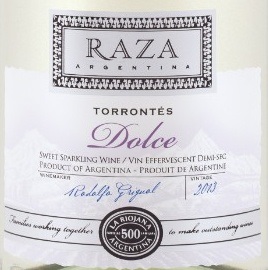 Raza Dolce La Riojana, Product Of Argentina Torrontés Sparkling Wine 2013