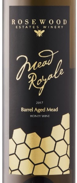A pleasant and aromatic mead Rosewood Estates Winery. Crafted from fermented honey produced by bees on site, this fine beverage combines notes of honey with mint, menthol, a slight nutty character, and some lovely floral touches. Bright acidity cuts the sweetness and lends very good balance. Honey and mint through the finish. A great accompaniment to charcuterie and desserts.